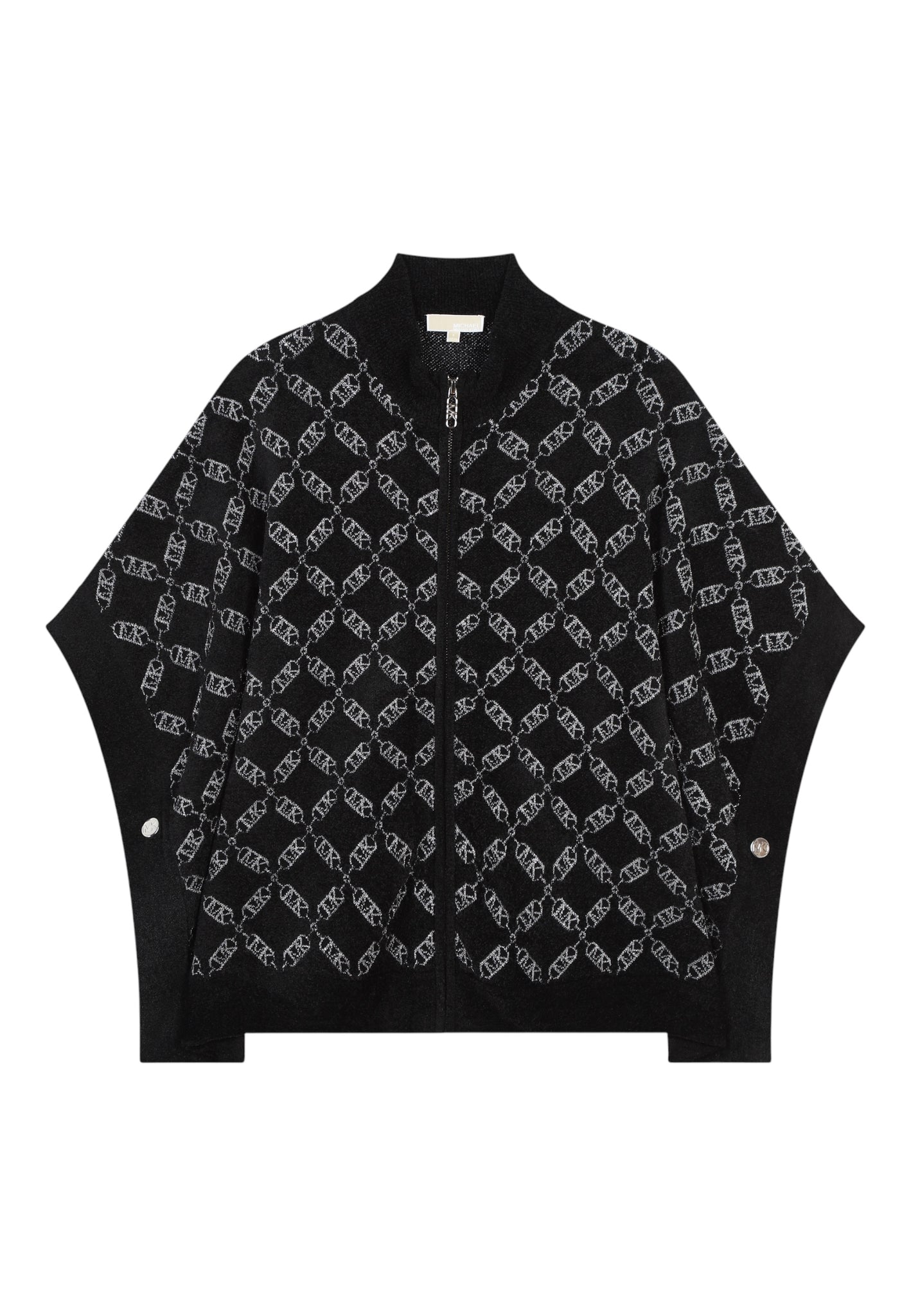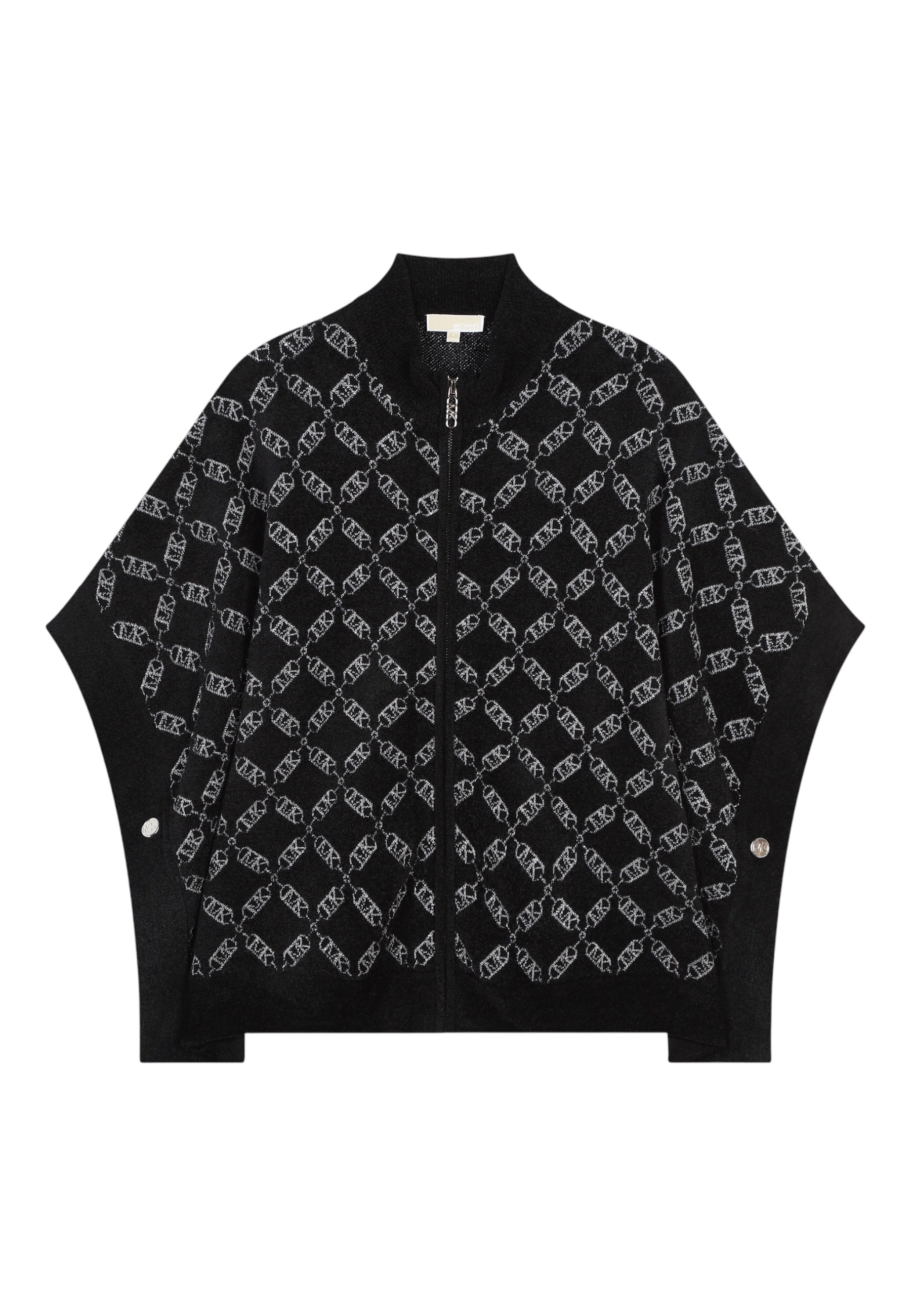 La mantella MICHAEL KORS riscalda i look del quotidiano. Ispirata alla collezione da adulti, è decorata dal jacquard metallizzato MK Empire. Si chiude grazie a cerniera e bottoni automatici sui fianchi. Collo a lupetto e bordo sono in maglia a coste tinta unita.